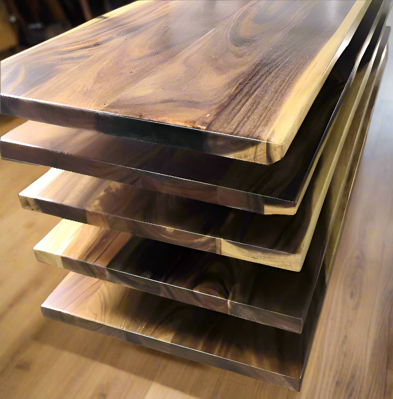 - Made from carefully selected walnut and red oak sourced from South America, these table tops showcase the natural beauty of authentic wood. The unique grain patterns and fine finishing ensure both durability and timeless appeal.